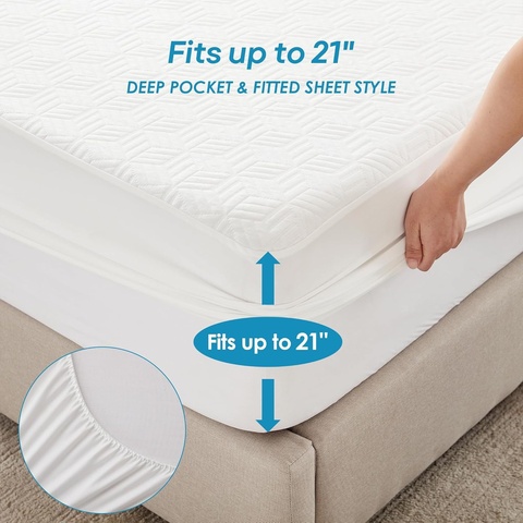 Bambu elyaf su geçirmez yatak şiltesi koruyucu tek parça petek beyaz gürültüsüz kapak yatak örtüsü